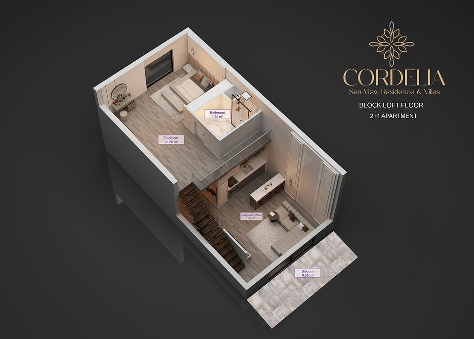 - 2+1 лофт пәтерлер туралы мәліметтер | Cordelia | Солтүстік Кипр